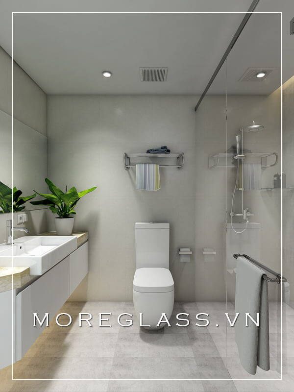 Vách kính cường lực được ưa chuộng và sử dụng rộng rãi trong thiết kế phòng tắm và nhà vệ sinh nhỏ đẹp.