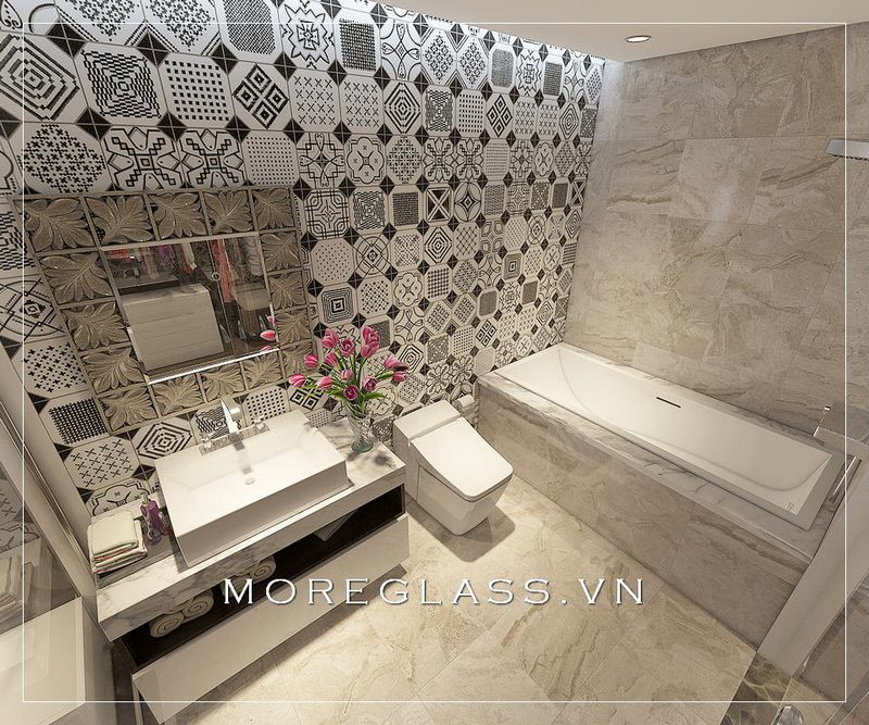 Phòng tắm được thiết kế đẹp với bồn tắm cao cấp và nội thất hiện đại, tiện nghi.