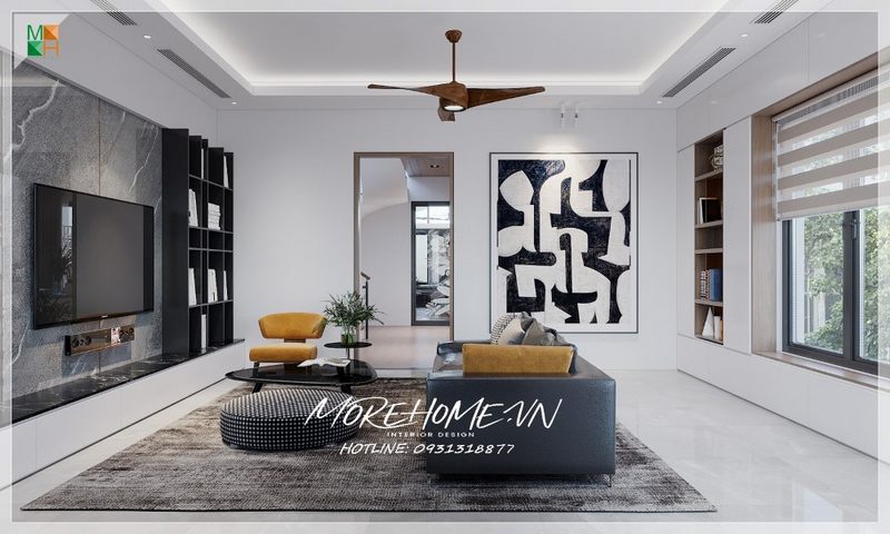 . Không cần phức tạp trang trí nội thất, phòng khách cung cấp đầy đủ không gian và đồ dùng nội thất để gia đình có nơi nghỉ ngơi thoải mái và thư giãn sau một ngày làm việc căng thẳng.